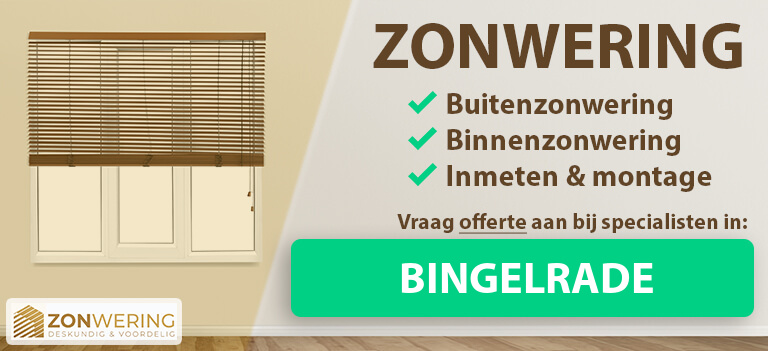 Al jouw wensen doorgegeven? Deel dan je adresgegevens en telefoonnummer. Je zal dan diverse offertes ontvangen van geschikte zonweringsbedrijven uit Bingelrade en de directe omgeving. Vergelijk alle prijsvoorstellen en analyseer prijs, garantie review en klantenservice. Ga in op de meest gunstige aanbieding en plan de klus in.
