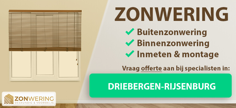 Al jouw wensen doorgegeven? Geef dan jouw contactgegevens door. Je krijgt 3 of 4 gratis offertes van erkende zonweringsbedrijven uit Driebergen-Rijsenburg en nabijgelegen plaatsen. Vergelijk alle prijzen en duik in de referenties, garantie en betalingscondities. Kies de meest aantrekkelijke aanbieding en contacteer het bedrijf.